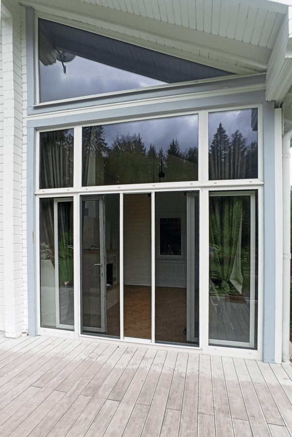 - Универсальность. Противомоскитная сетка плиссе идеально подходит для больших проемов – террас, веранд, беседок, мансардных окон, где обычные рамочные сетки использовать невозможно.