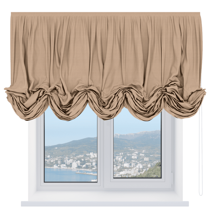 Австрийская штора вельвет песочный, карниз верёвочный
