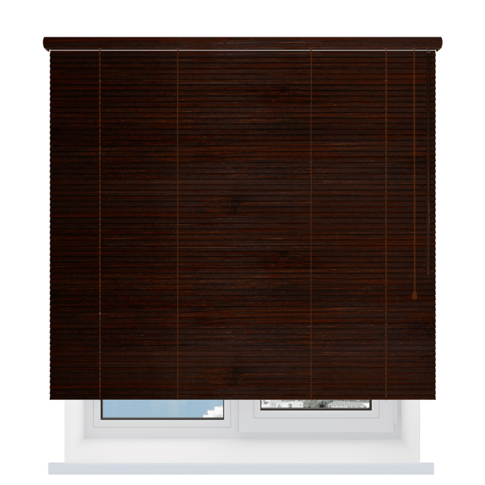 Стандартное управление осуществляется с помощью шнура и трости, которые располагаются с одной стороны. Также осуществляем производство деревянных жалюзи на заказ с электроприводом для управления с пульта или смартфона.